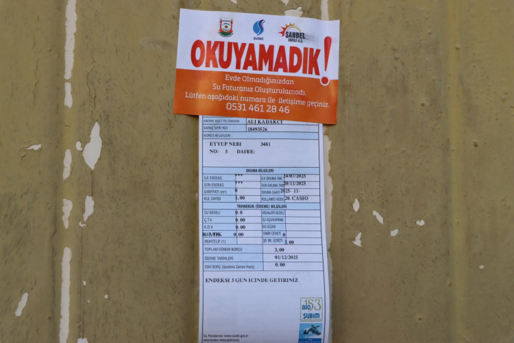 ŞANLIURFA (İGFA) – Yeni sistem kapsamında, su faturalarını okumak üzere adreslere gelen takımlar, hane sakinleri konutta bulunamadığında kapıya “Okuyamadık” notu bırakıyor. Bu not üzerinde yer alan numaraya WhatsApp üzerinden sayaç bilgilerini gönderen vatandaşların faturaları süratle oluşturuluyor. Böylelikle birikmiş fatura ödemelerinin önüne geçilerek hem vakit hem de maddi kayıp engellenmiş oluyor.