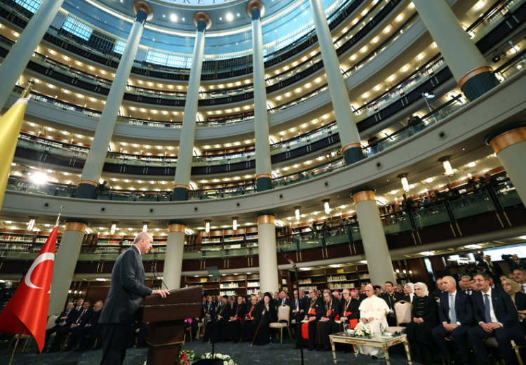 ANKARA (İGFA) – Cumhurbaşkanı Recep Tayyip Erdoğan, baş başa ve heyetler ortası görüşmelerin ardından Vatikan Devlet Başkanı Papa 14. Leo ile Cumhurbaşkanlığı Millet Kütüphanesi’ndeki Cihannüma Salonu’nda düzenlenen programda konuştu.