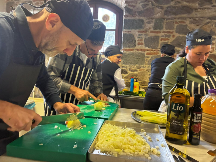 Yurttaş, Ege mutfağının dünya mutfaklarından ayrılan güçlü istikametlerine dikkat çekerek hazırlanan tanımların püf noktalarını uygulamalı olarak anlattı.